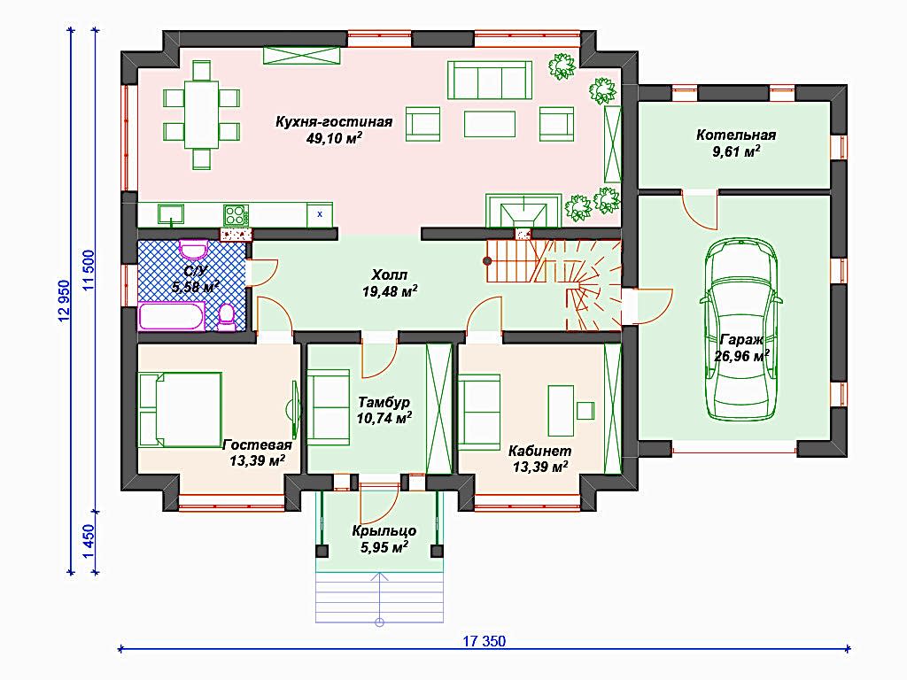 - Этот дом имеет один этаж - это позволят быстрее и проще его построить.